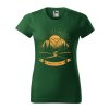 dámske tričko s potlačou Turistka na vrchole hory, farba benzínovomodrá, 100% bavlna