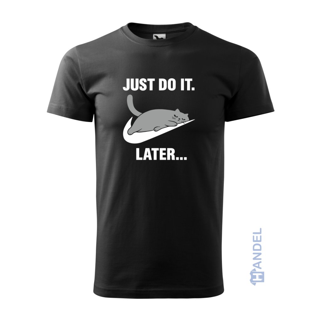 Tričko pre všetkých milovníkov odkladania povinností na potom! 🐱 Vtipná potlač s lenivou mačkou a nápisom "Just do it. Later..." je ideálna pre každého, kto si rád dopraje čas na oddych.