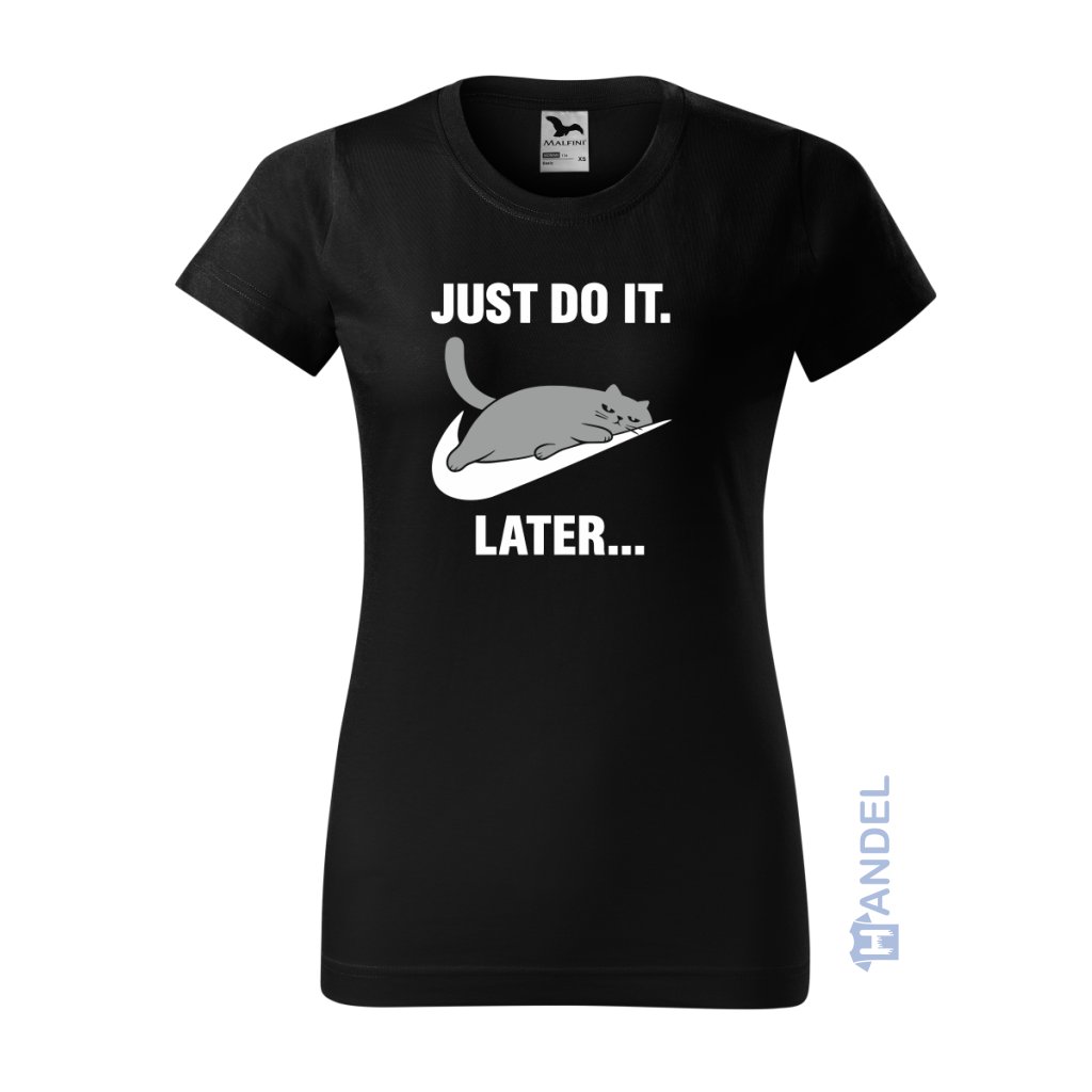 Tričko pre všetkých milovníkov odkladania povinností na potom! 🐱 Vtipná potlač s lenivou mačkou a nápisom "Just do it. Later..." je ideálna pre každého, kto si rád dopraje čas na oddych.