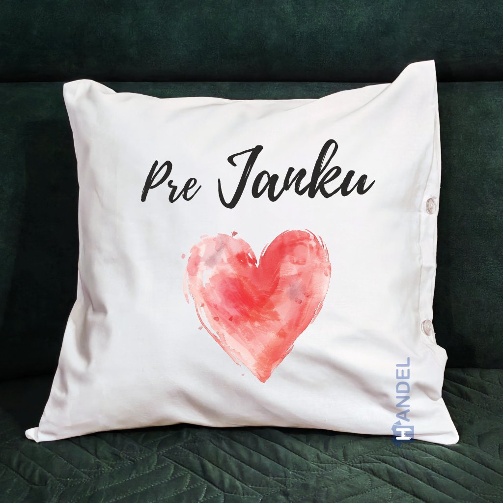 Personalizovaný valentínsky vankúš s maľovaným srdcom.